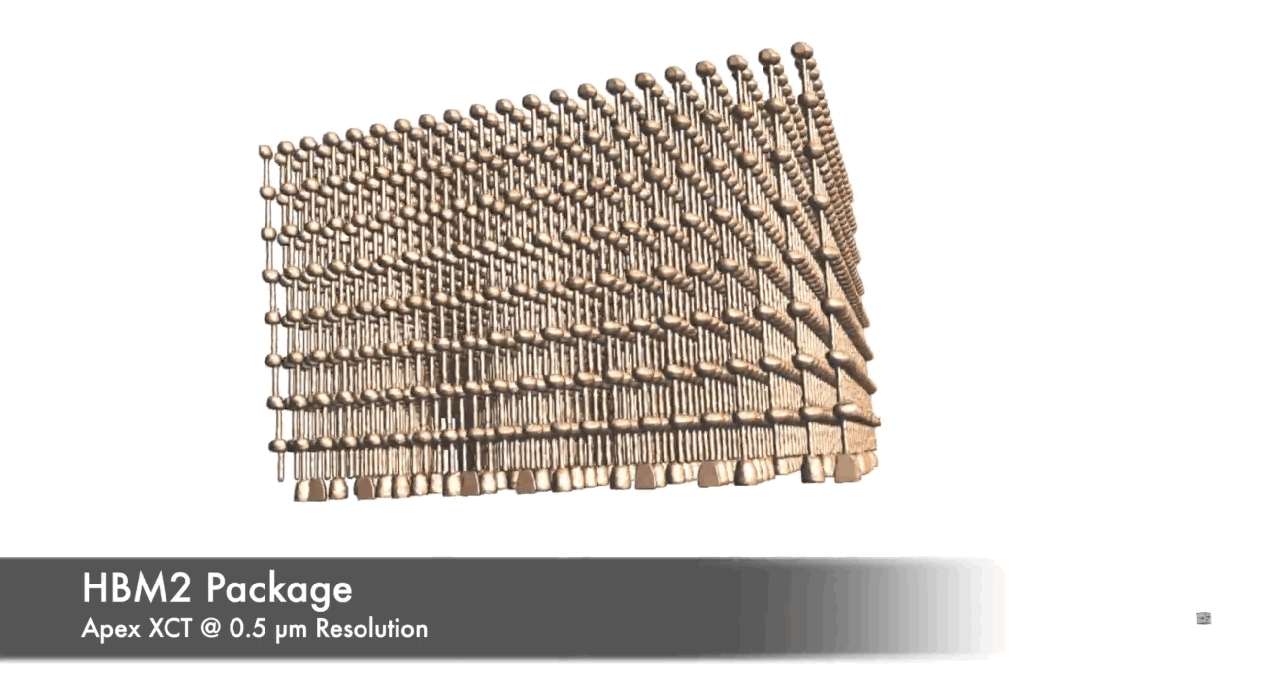 MI25 graphics accelerator board (HBM2 package) at 0.5 µm, imaged with Apex XCT